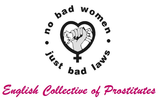 Come along on Tuesday 7 October to discuss these issues with Brighton & Hove LRC and the English Collective of Prostitutes. Afterwards, you might like to consider the ECP’s recommendations for changes in law and policy and to sign the ECP’s pledge to decriminalise sex work for safety’s sake – and ask your MP and Labour candidates to do the same.