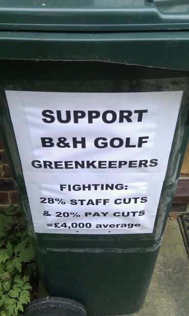 The green keepers will appreciate your solidarity even if you are outside of Brighton & Hove. A solidarity message on your bin is also an option. Support our green keepers, who a cash-rich company appears to be trying to penalise for its own failings, and oppose any privatisation of public sports facilities.