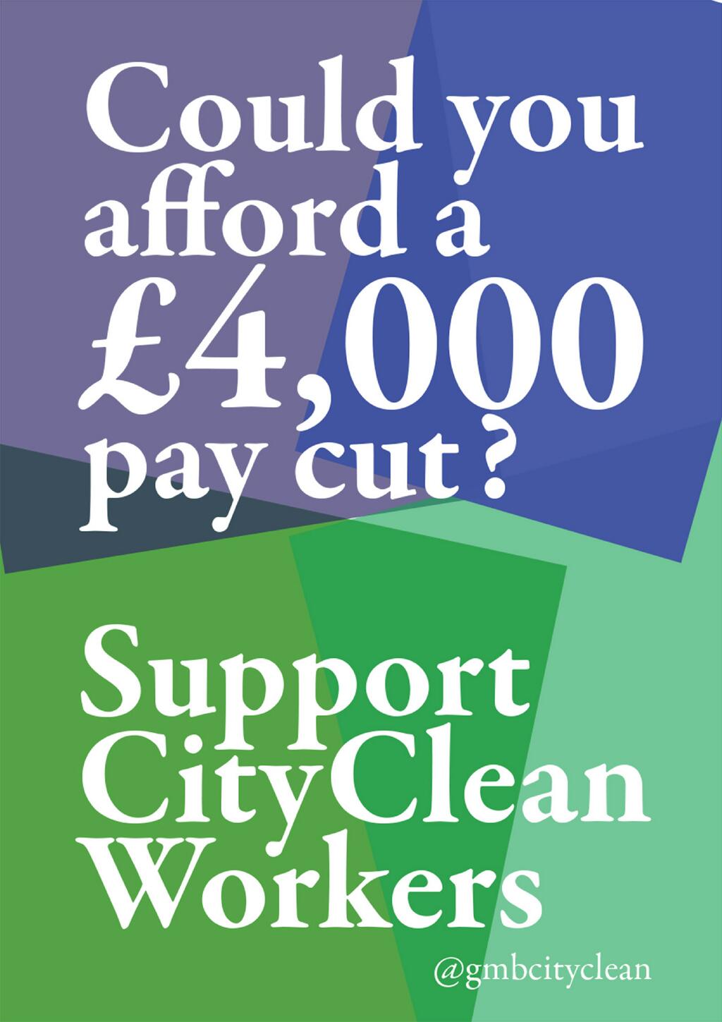 Support the Cityclean workers! Sign the petition against these draconian cuts, donate to the strike fund (immediately below main story) or to the GMB’s Regional Dispute Fund, and listen to the Cityclean workers themselves, as well as to a thumping speech from GMB Regional Secretary Paul Maloney. Pay should be equalised up, not trampled down. Council Chief Executive Thompson has suggested that the funding gap may be as low as £440,000, which could easily be funded by a cap on the salaries of the highest paid staff. As Christine Robinson, vice-Chair of Brighton, Hove and District Labour Party, has said: “For anybody here in this Labour Party who can actually condone an up to £4,000 a year cut to Council workers, I suggest you get up and leave now”. We agree!