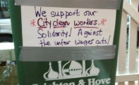 Shockingly, even before the ballot result was known, evidence emerged that the Council is planning to use contracted agency workers as strike-breakers. Brighton & Hove City Council Chief Executive Penny Thompson repeatedly said: “The Council has a duty to maintain service provision, to minimise disruption caused by any industrial dispute”. The easiest way to do this would be to withdraw the forced pay cuts of up to £95 per week and sit down around a table with Cityclean staff, rather than waste taxpayers’ money on offensive scab rubbish depots and ruin the reputation of one of Sussex’s top tourist resorts.