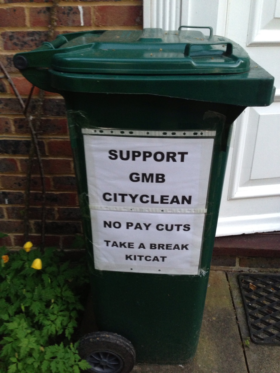 Refuse workers and street sweepers at Brighton & Hove Cityclean simply can’t afford the pay cuts that Brighton & Hove’s Green-led City Council is trying to force upon them. Take a pay cut or leave your job is no option. Despite being some of the lowest paid staff the Council employs, staff were told in May that they would lose up to £95 per week. That led to an unofficial two day strike, followed by a work-to-rule which has had widespread local support.